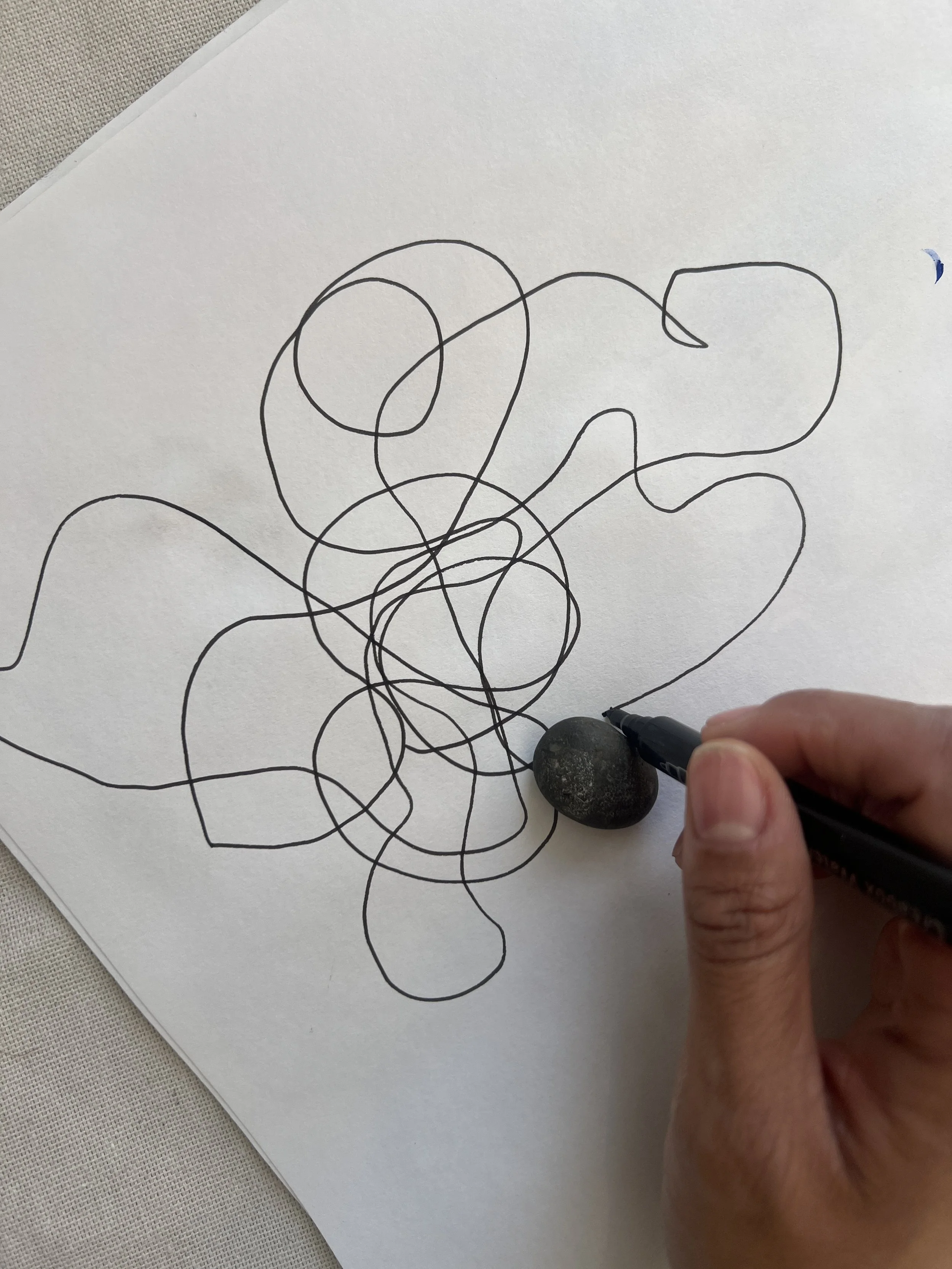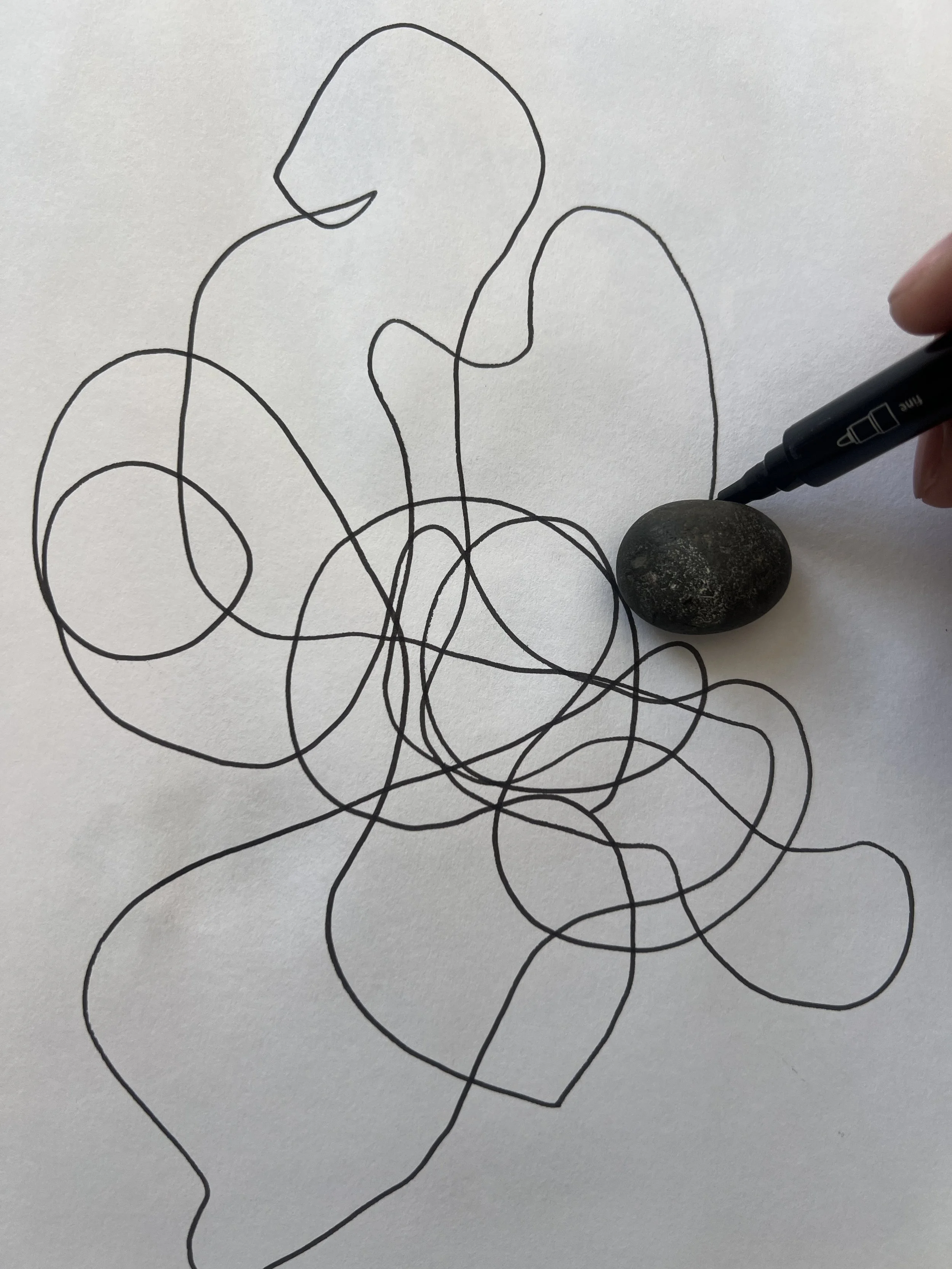 One day, I picked up a pebble and followed a quiet impulse. I placed my pen on paper, held the pebble in my hand, and let it guide me.